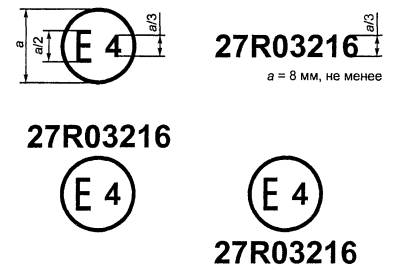 5.4.1.1 круга, в котором проставлена буква «Е», за которой следует отличительный номер страны, представившей официальное утверждение1),