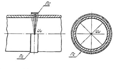 Для удобства нахождения дефектных участков шва целесообразно использовать мерительные пояса со свинцовыми знаками, обеспечивающие разметку сварного соединения.