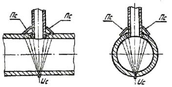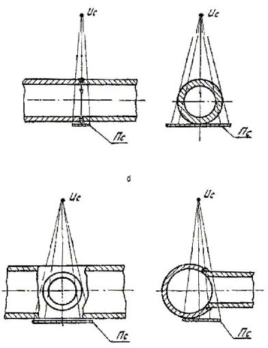 любых дефектов, если их изображения на снимках совпадают с изображениями посторонних деталей, острых углов или резких перепадов толщин свариваемых элементов.