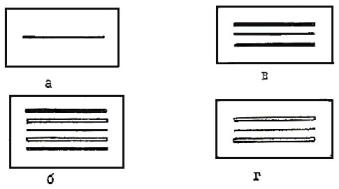 2.5. Оценку результатов контроля по снимкам, схематично представленным на рис. 1-4, производят в соответствии с пп. 2.1 и 2.2 настоящей методики. При этом в заключения заносят дефекты в соответствии со схемами, представленными в вариантах «б» рис. 1-4, и по ним оценивают качество данного участка шва: годен, не годен. Дополнительно в графу «Выявленные дефекты» с помощью соответствующего символа вносятся все остальные дефекты (варианты а, рис. 1-4) со знаком «<»по отношению к удвоенной чувствительности контроля без дополнительной записи в графе «Оценка качества шва по каждому снимку».