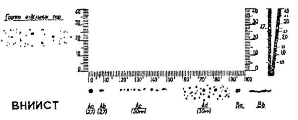 2.1. При обнаружении на снимке (в процессе обычной расшифровки результатов радиографического контроля) недопустимых по длине одиночных дефектов, цепочек и скоплений газовых пор и шлаковых включений производят оценку качества этого снимка на соответствие его требованию п. 1.4 настоящей методики (предварительную оценку целесообразно осуществлять с помощью дефектоскопической линейки, значительно ускоряющей и упрощающей расшифровку снимка).