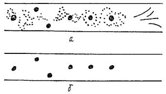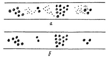 а - повышенной чувствительности в виде сплошного непрерывного скопления; б - допустимой чувствительности в виде отдельных мелких скоплений