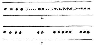 а - повышенной чувствительности в виде оплошной цепочки; б - допустимой чувствительности в виде отдельных цепочек пор