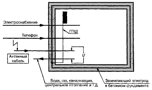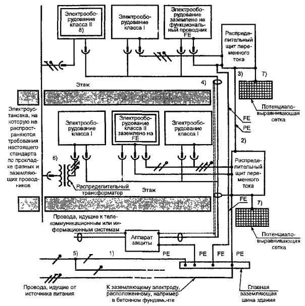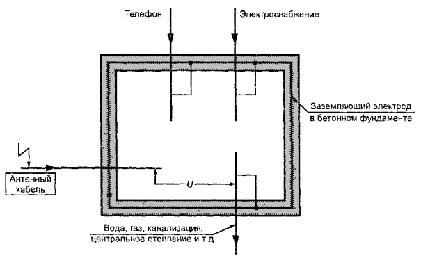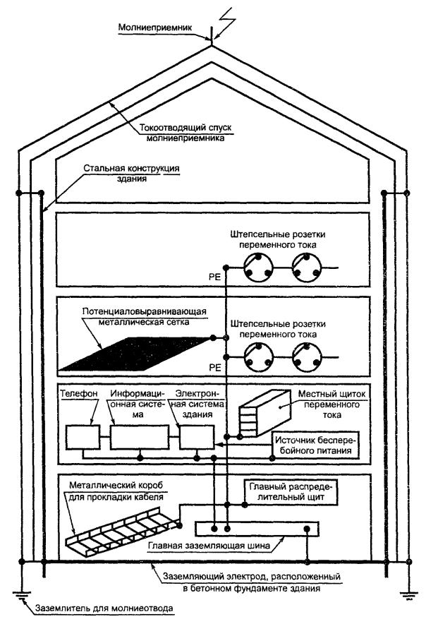 Рисунок 5 - Общий вид системы заземления здания в соответствии с требованиями ГОСТ 50571.10, МЭК 1000-2-5 [1] и МЭК 1024-1 [3]