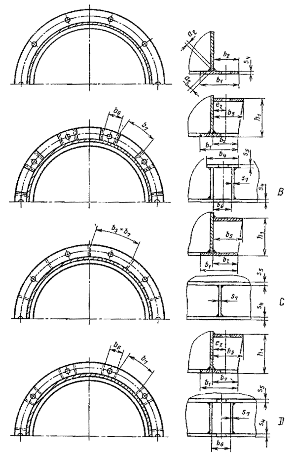 при D1>2200 мм болты диаметром М36 мм устанавливают с шагом 1200 мм, но во всех случаях число болтов должно быть не более 12.