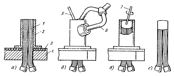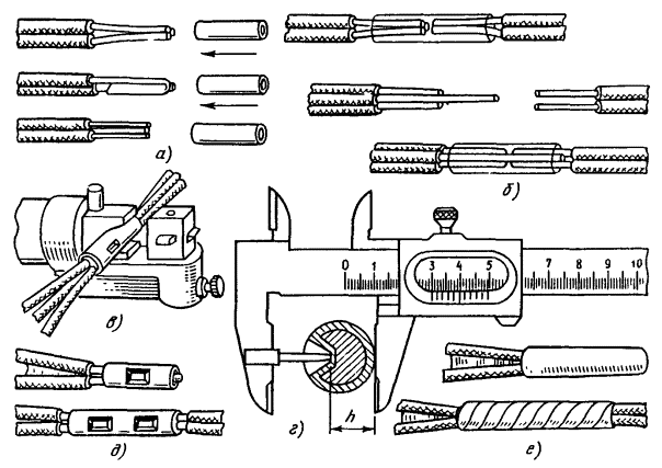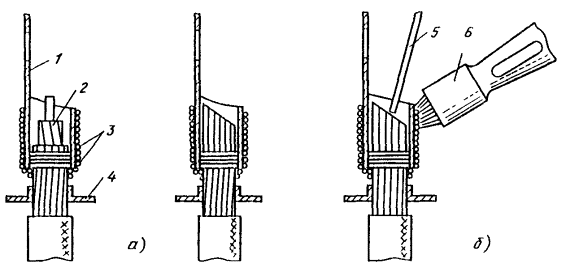 Пайка: с применением гильз (ГОСТ 6107-77) |