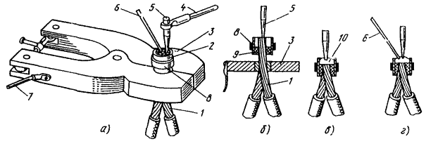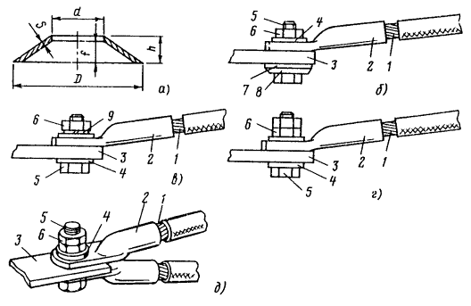 В табл. 1.1 указаны области применения способов оконцевания, соединения и ответвления. Приняты следующие термины: