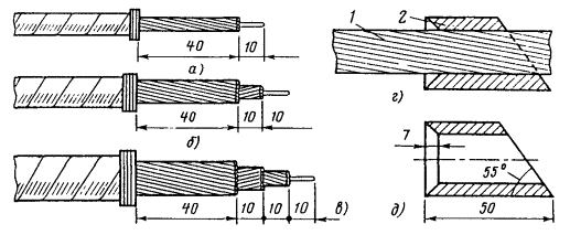 Примечания: 1. В числителе приведены данные для соединения жил, в знаменателе - для оконцевания.