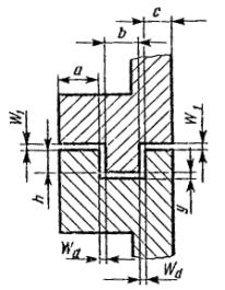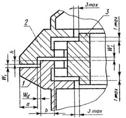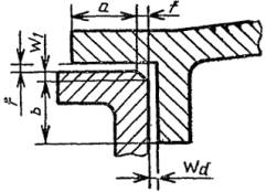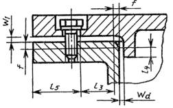 W1 - ширина щели плоского взрывонепроницаемого соединения; Wd - ширина щели цилиндрического взрывонепроницаемого соединения; L1 = a + b - длина щели; f - размер фаски