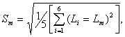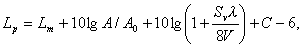 Lm - средний уровень звукового давления в полосе частот по шести точкам измерений, дБ, вычисляемый по п. 6.1.