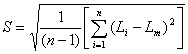 4.8. Количество точек измерения Nm и мест расположения источника шума Ns, необходимое для обеспечения точности измерений, зависит от характера спектра шума, излучаемого источником. Для источников, характер спектра шума которых заранее неизвестен, они должны быть определены по измерениям уровней звукового давления при работе испытуемого источника шума в октавных полосах частот в 6 точках измерения (по п. 4.6) в следующей последовательности: включают испытуемый источник шума, измеряют уровни звукового давления в октавных полосах частот в 6 точках измерения; вычисляют среднеквадратическое отклонение Sm дБ, для каждой полосы частот по формуле
