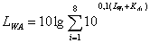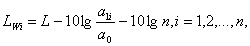 где Рi - предельно допустимое значение звуковой мощности в октавной полосе частот i-й машины, Вт;