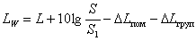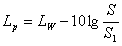 5.2.5 Предельно допустимые значения октавных уровней звуковой мощности LW вычисляют по предельно допустимым значениям звуковой мощности Р по формуле