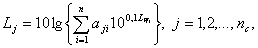 5.2.2 Предельно допустимые значения звуковой мощности в октавных полосах частот определяют, решая систему линейных алгебраических уравнений (далее - система или система уравнений)