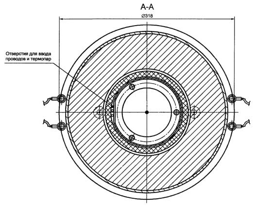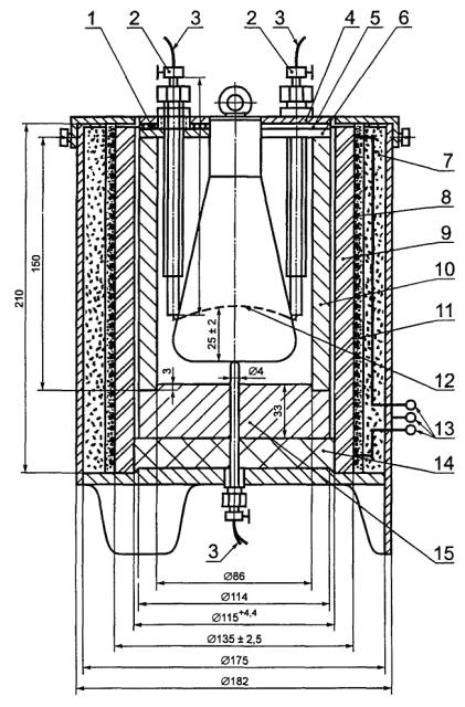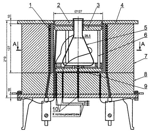 - цилиндр из огнеупорного материала с внутренним диаметром 127 мм и высотой 127 мм, на наружной поверхности которого намотан равномерно распределенный по высоте электрический нагреватель мощностью 1200 Вт;