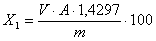 Массовую долю соединения железа в пересчете на Fe2O3 (Х1) в процентах вычисляют по формуле