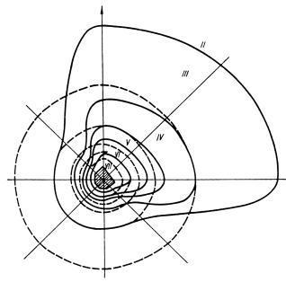 - - - - - границы зон с различной СЗА при круговой розе ветров;