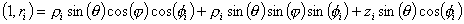- проекцией ri, радиуса-вектора на горизонтальную плоскость;