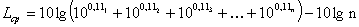 Для определения среднего значения уровней по формуле (3) п. 6.2. измеренные уровни необходимо просуммировать с использованием табл. П.1.1. и вычесть из этой суммы 10lgn, определяемое по табл. П.1.2, при этом формула (3) п. 6.2 принимает вид: