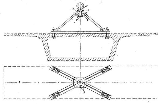 1-монтажный крап; 2-блок; 3-понтон или другое транспортное средство