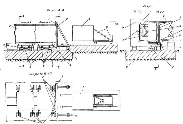 1-монтажный кран: 2-блок; 3-передвижные